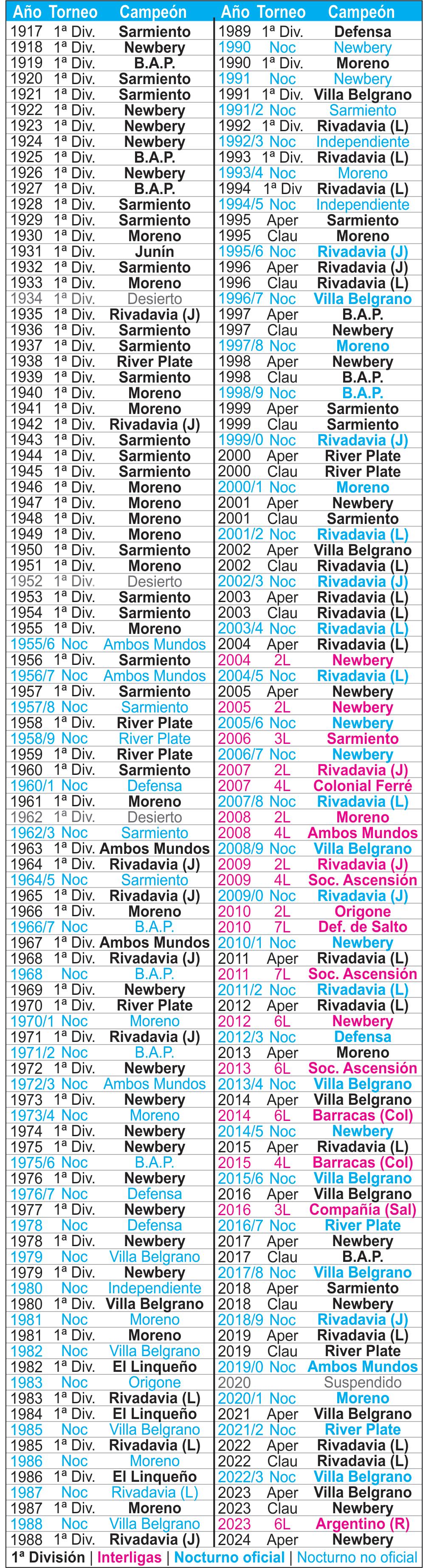 nando los torneos nocturnos de 1982, 1985 y 1988. En 1991 llegaría el segundo título de Primera División de la mano de Ricardo Calabró. Villa se consagró campeón por un punto de diferencia ganándole en la última fecha a Rivadavia, su clásico rival. Este título le permitió participar en el Torneo del Interior de 1992, segunda experiencia del club en la AFA. El club se adjudicó su quinto título nocturno en el torneo de 1996/97 y ganó el triangular clasificatorio para el Torneo Argentino B 1997/98. Esa temporada también hubiese logrado el campeonato oficial, al quedar en la primera posición del torneo Clausura. Sin embargo, debido a incidentes que se produjeron al finalizar el partido frente a River, el tribunal de disciplina decidió penalizar a Villa Belgrano quitándole los puntos. De esta manera, el campeón oficial fue Newbery, aunque para los hinchas de Villa ese año fue el del “tricampeonato”.