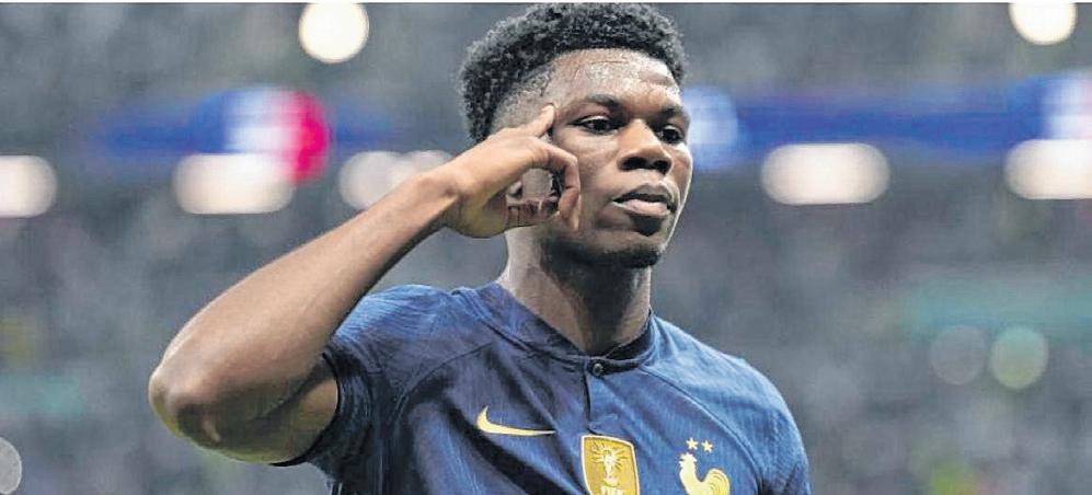 El futbolista Aurélien Tchouaméni abrió el marcador para que Francia le gane a Inglaterra y lo celebró con un homenaje al ídolo de Racing y actual delantero de Sarmiento de Junín, Lisandro López.