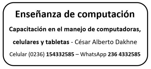 Zulma B. DIPERNA. Psicóloga. Mat. 10263. Niños, adolescentes, adultos. Tel.: (0236) 154453749 / 4421842. B. de Miguel 581. Maipú 53. junín.