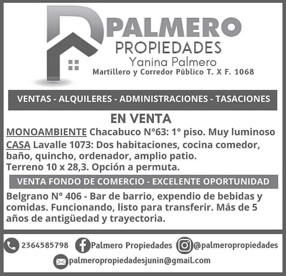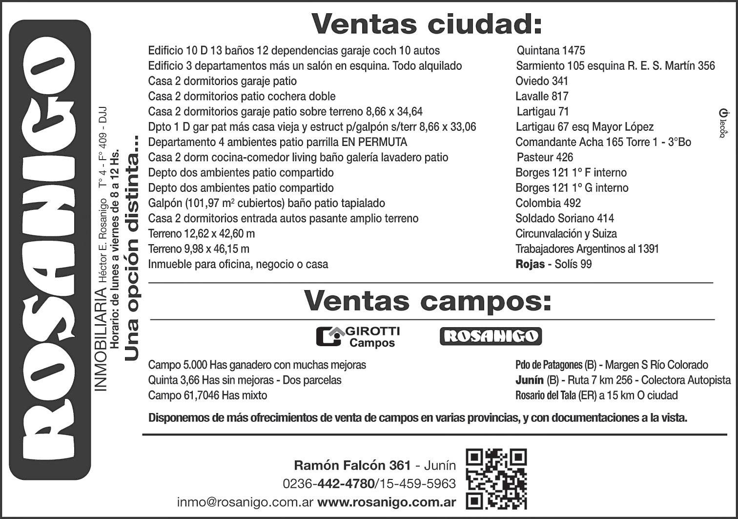 tASACIONES - VENtAS - AlQUIlERES Tel: 0236 - 4632902 CEL. 0236 - 154 33 55 26 SIrIA 152 - juNIN (B) inmobiliarialipera@hotmail.com