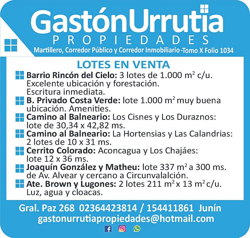 L S uSd 63.000 maipÚ 50: 8.66x34.60 metros. 300m2. Zona r2. t.L.S. uSd 58.000 aLsina Y FUse: 10x52.00 metros. (520 m2 c/u) Zona r3.