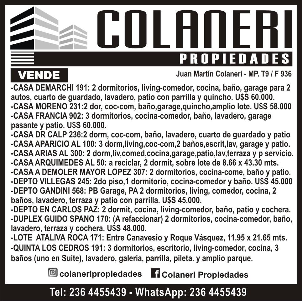 •Pasaje M d Plata 24: Dos dor, com, coc, garaje, baño, salón/quincho u$s45.000
