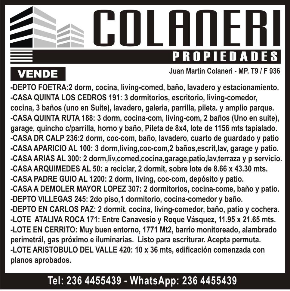 - DPTO P. BAJA C/ FRENTE S/ ESPAÑA 40: (A 1 y 1/2 cuadra de la facultad) 2 dorm, 2 baños, living y coc-comed. muy amplios, lav. cub., patio propio, gas nat. U$S70.000