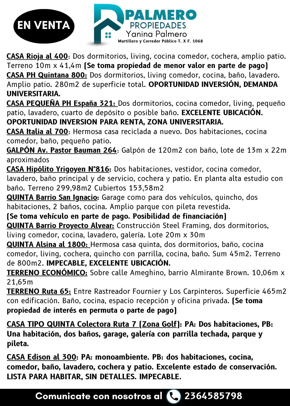 Av. dr. Benito de Miguel 148 - Junín (B) - Teléfono: 0236 443-1773 Vende / inVeRsiones