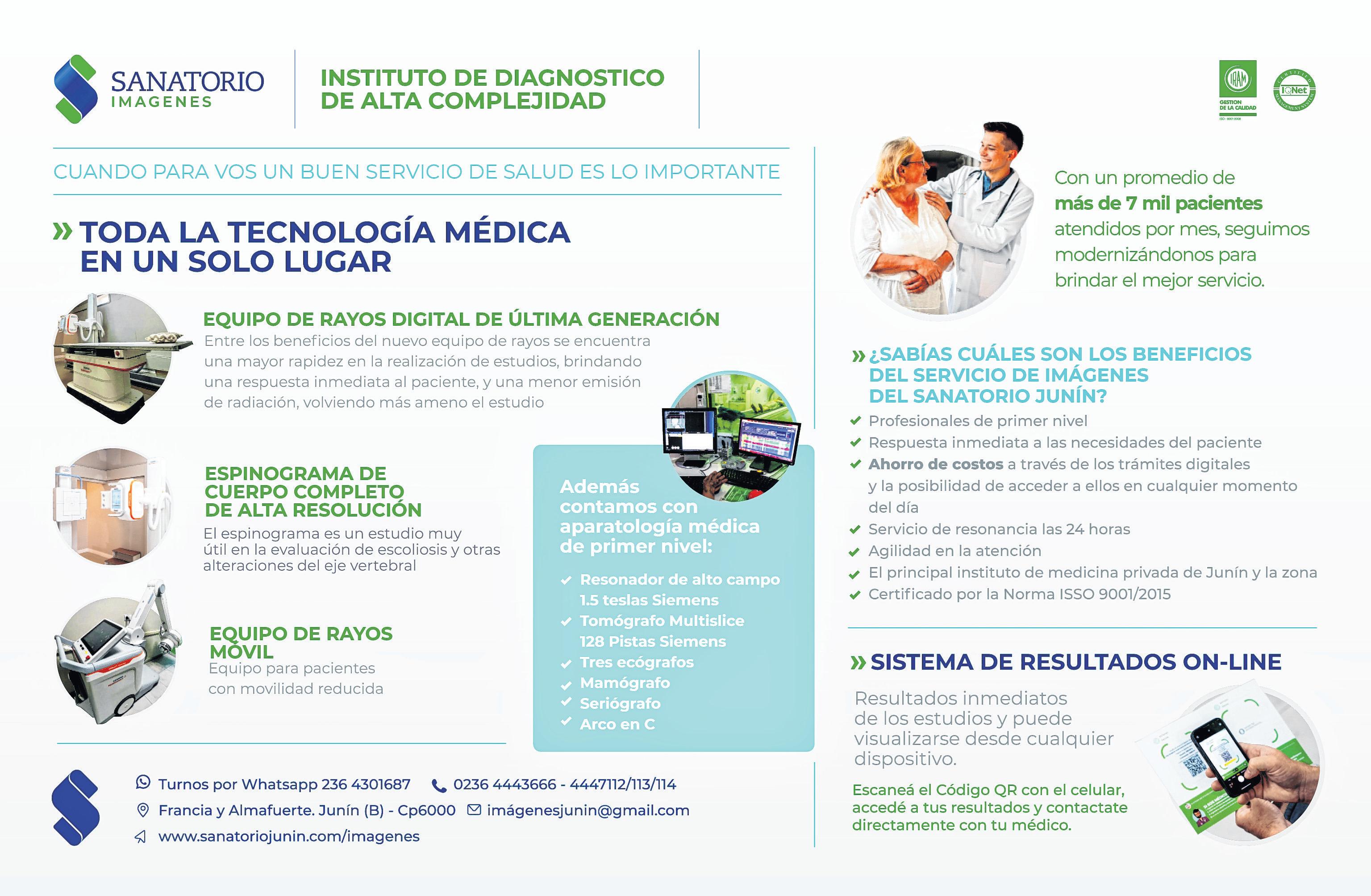 hoy tranquilamente se atiende en Junín pero además reciben derivaciones que antes llegaban hasta la Capital y hoy quedan en Junín. La calidad y la tecnología médica es excelente”, manifestó.