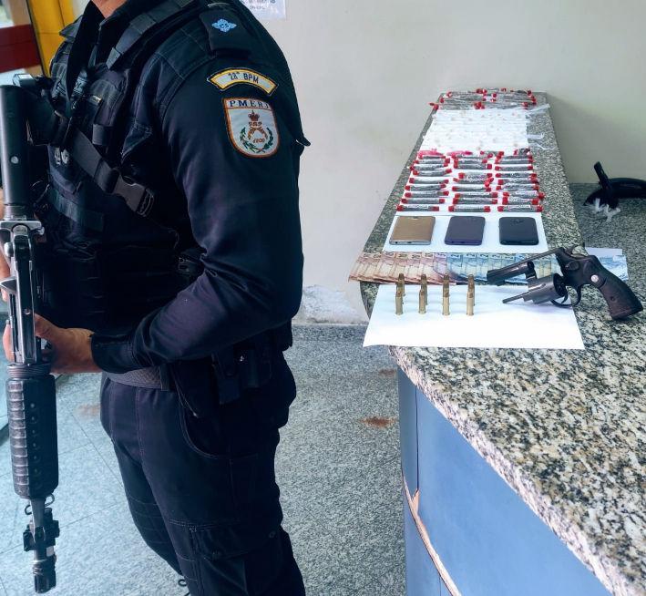 ceu no bairro Volta Grande Com o suspeito, de 24 anos, foram encontradas drogas, carregador de pistola, munição e aparelho celular