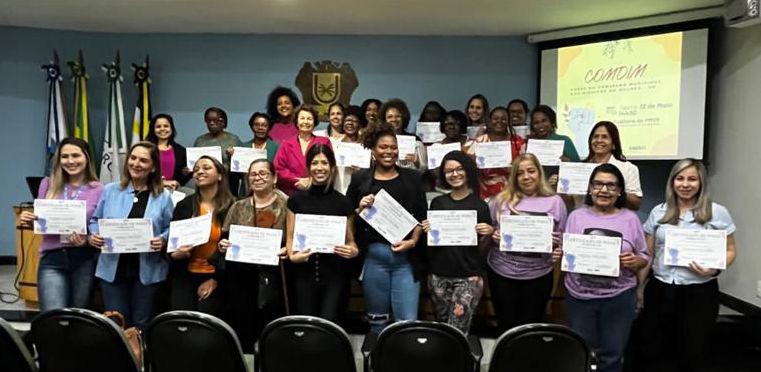 A Secretaria Municipal de Políticas para Mulheres e Direitos Humanos (SMDH) de Volta Redonda empossou as 20 conselheiras eleitas do Conselho Municipal dos Direitos da Mulher (COMDIM) para mandato de três anos As cadeiras do grupo são divididas entre a sociedade civil, que fica com dez acentos, e representantes do governo municipal, que ficam com a outra metade A solenidade, na última semana, teve a participação dos secretários municipais de Estratégia Governamental, Carlos Macedo; e de Políticas para Mulheres, Glória Amorim.