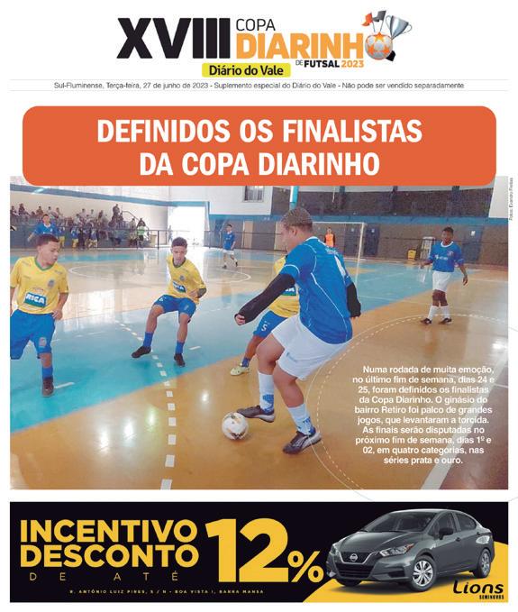 Nesta terça-feira, dia 27, circula junto com o DIÁRIO DO VALE o caderno especial da Copa, com os resultados das semifinais e os confrontos da grande final, que acontecerá no próximo fim de semana, dias 1º e 02, em quatro categorias, nas séries prata e ouro.