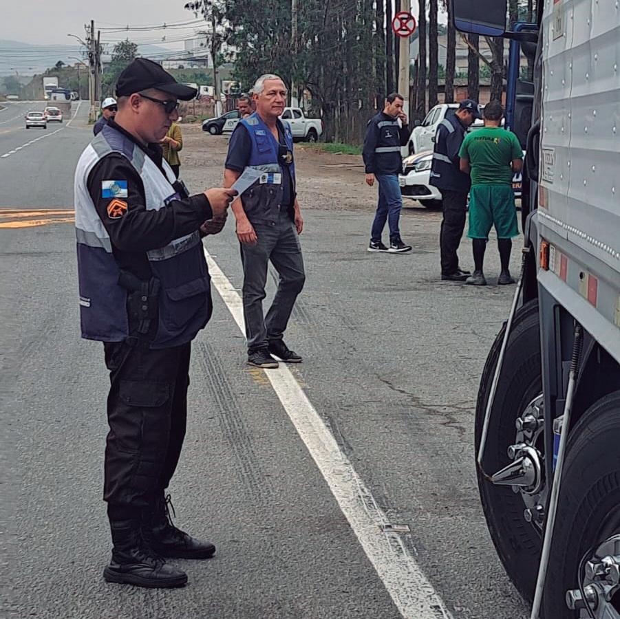 Agentes fiscalizam caminhões na Rodovia dos Metalúrgicos, em Volta Redonda. ICMS teve alta de 52,73%, as multas subiram 71,79%