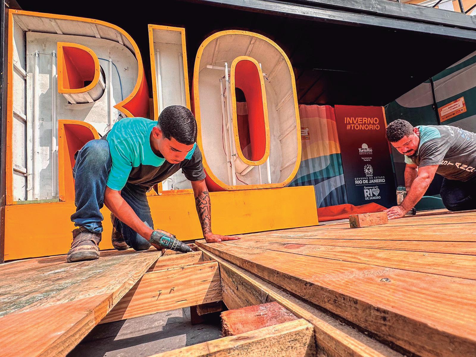 Trabalhadores montam estande do projeto Inverno #tônoRio