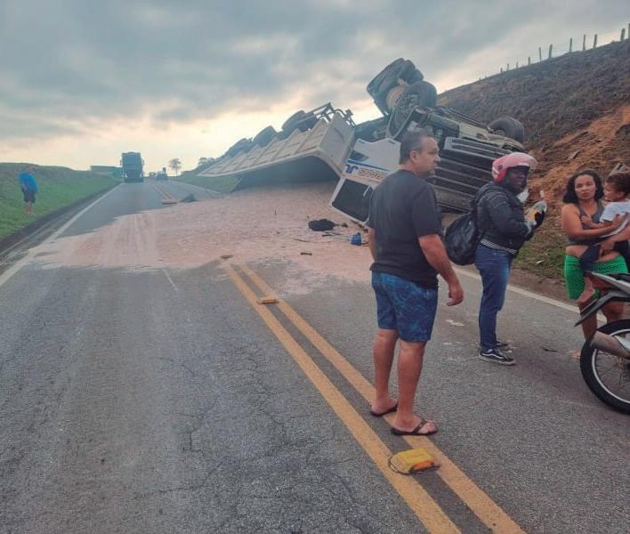 O motorista de uma carreta que transportava areia perdeu o controle do veículo, que saiu da pista auxiliar e tombou KM-298 da Via Dutra, na pista de retorno e acesso a Bulhões. O motorista, a esposa e o filho foram encaminhados para o Hospital de Emergência de Resende para avaliação médica, mas só o motorista estava com ferimentos aparentes.