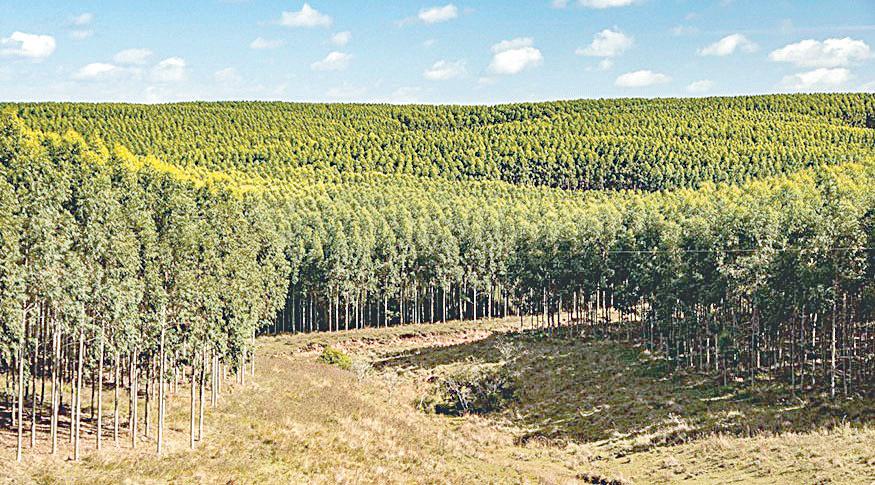 indústria de celulose. Juntos, eucalipto e pinus foram responsáveis pela cobertura de 96,0% das áreas cultivadas com florestas plantadas para fins comerciais no país.