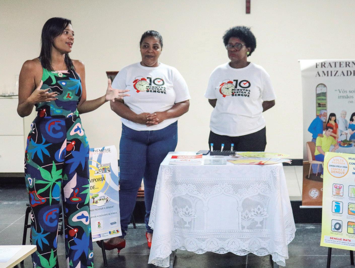 ranças das comunidades. “Ficamos gratos com o trabalho, pois percebemos a associação da comunidade, de uma maneira geral. A Diocese tem uma entrada nas comunidades, as pessoas escutam, então falar sobre o assunto nas missas, nos encontros, nos grupos, é extremamente importante. Já saímos daqui com ideias de mutirões e de mobilizações. Ressalto que, com as parcerias alinhadas com as nossas forças, vamos conseguir vencer essa batalha contra o mosquito”, disse a coordenadora. Responsável pelas Pastorais Sociais da Diocese, Clemilde Dalbone ressalta a parceria com a prefeitura. “Essa é mais uma ação em colaboração com as secretarias e demais órgãos da prefeitura, visando capacitar os agentes das pastorais para também atuarem de forma ativa no combate, por exemplo, da dengue”, comentou Clemilde.
