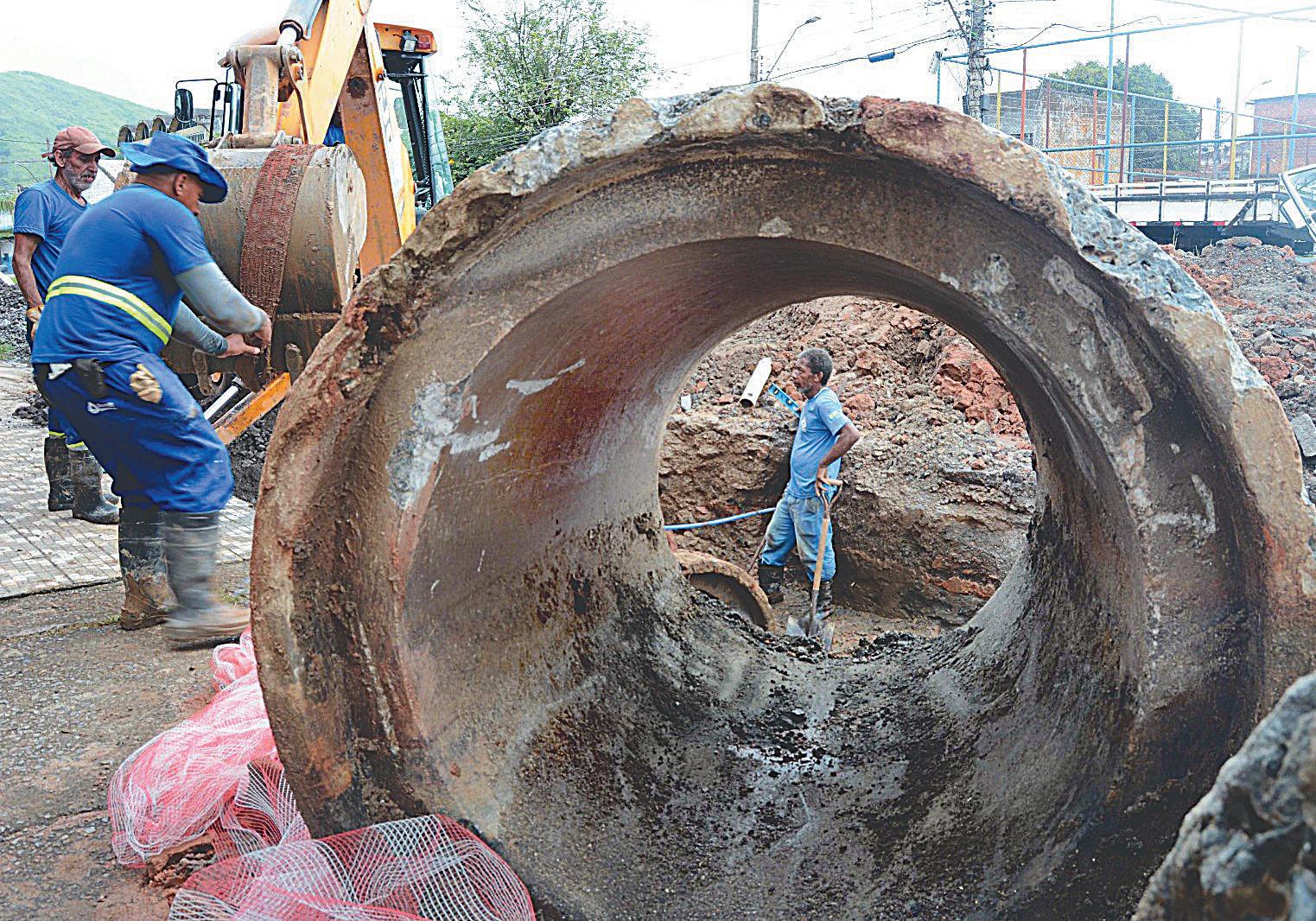 torno de 70 metros, fazendo a retirada das manilhas para a desobstrução e remoção do material acumulado ao longo do tempo”, disse.
