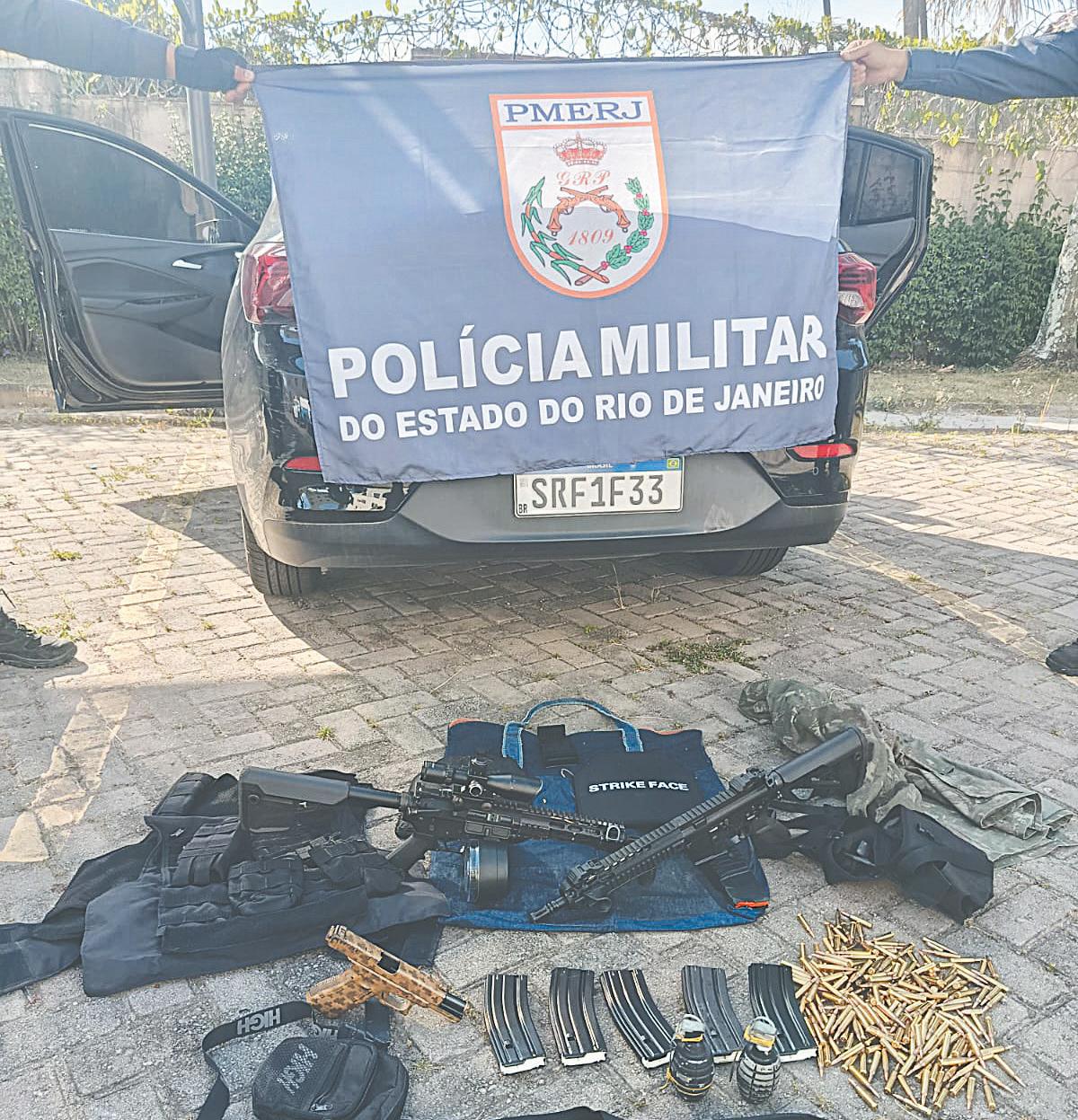 munições, além de dois coletes balísticos, placas de proteção, munições a contabilizar e duas granadas. Todo o material foi recolhido no local. A perícia foi acionada. Até o momento, as investigações mostram que o carro teria sido roubado no Engenho Novo, no Rio, na terça-feira (25). O caso foi registrado junto à Polícia Civil, que investigará de onde viriam e para onde iriam as armas apreendidas.