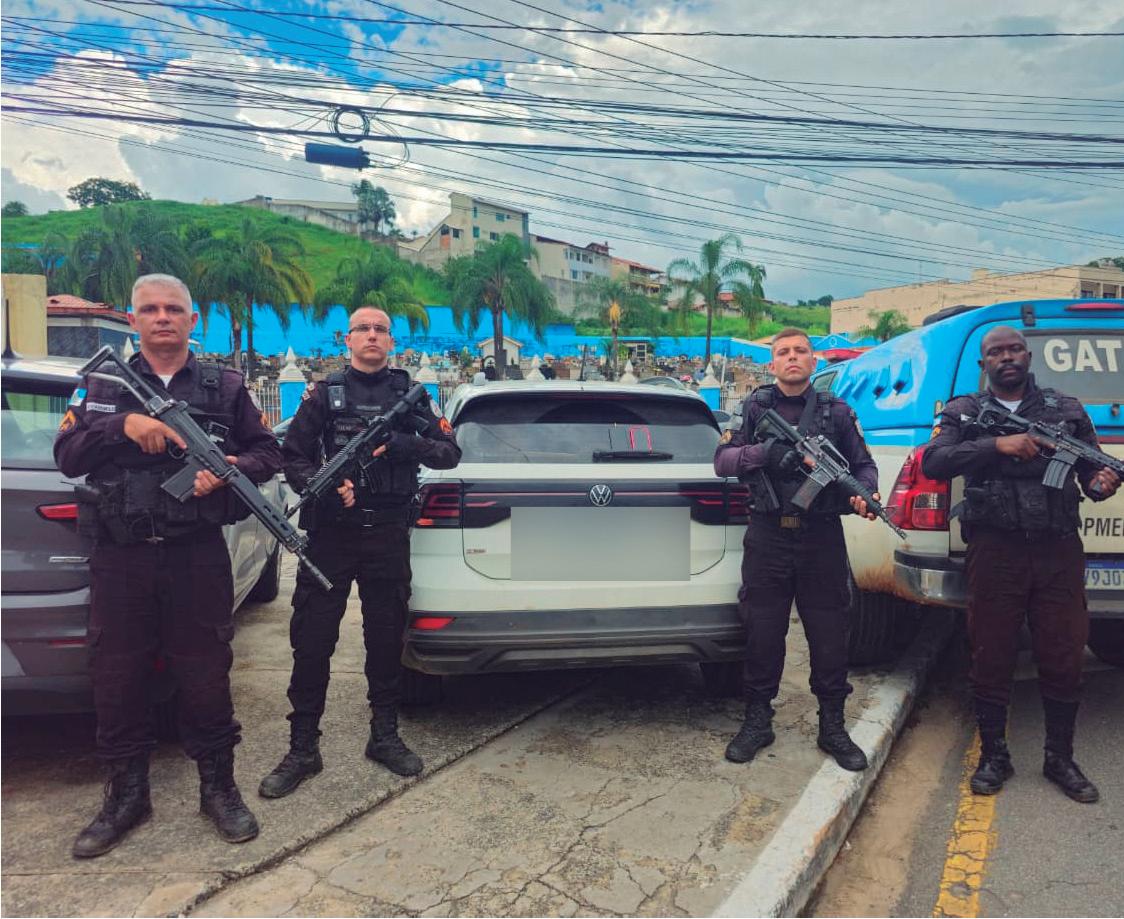 Dois jovens, de 24 e 20 anos, foram presos na tarde de segunda-feira (26) no centro de Barra Mansa após abordagem da Polícia Militar a um veículo clonado. Com eles, os agentes apreenderam uma munição de uso restrito e dois telefones celulares. A ocorrência foi encaminhada à 90ª Delegacia de Polícia. A ação ocorreu por volta das 13h20 na Rua Major Luiz Alves, nas proximidades da Apae. Equipes do Grupamento de Ações Táticas (GAT II) intensificavam o patrulhamento após informações de inteligência sobre a circulação de um Volkswagen T-Cross branco possivelmente clonado e associado a integrantes de uma organização criminosa. Durante o patrulhamento, os policiais identificaram um veícu-