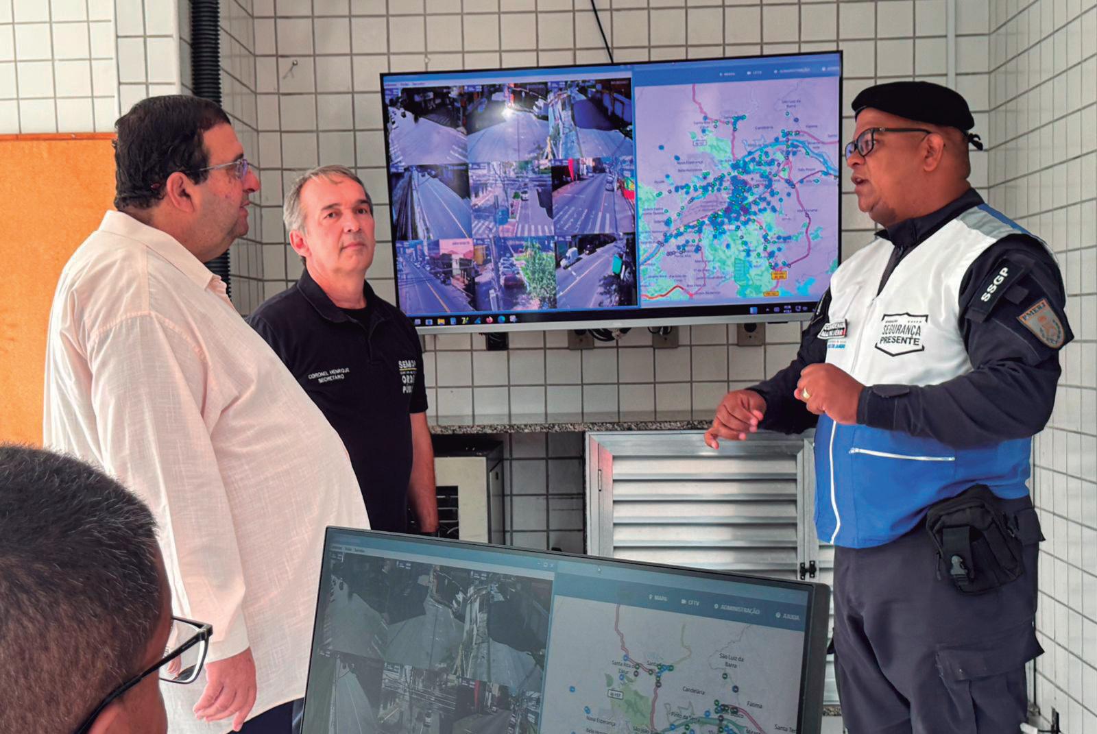 Deputado Munir Neto, secretário de Ordem Pública Coronel Henrique e Major Silvério visitam instalações com monitoramento 24 horas