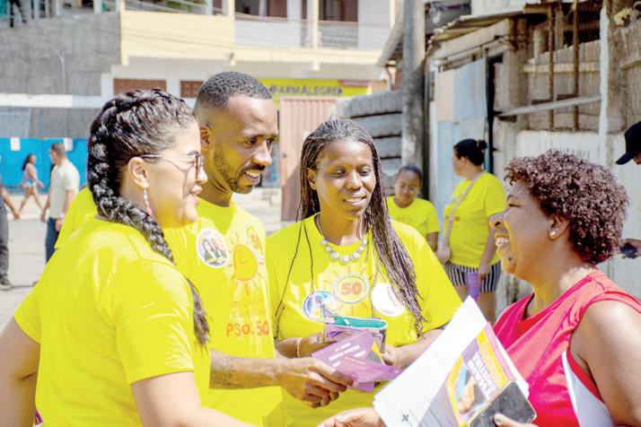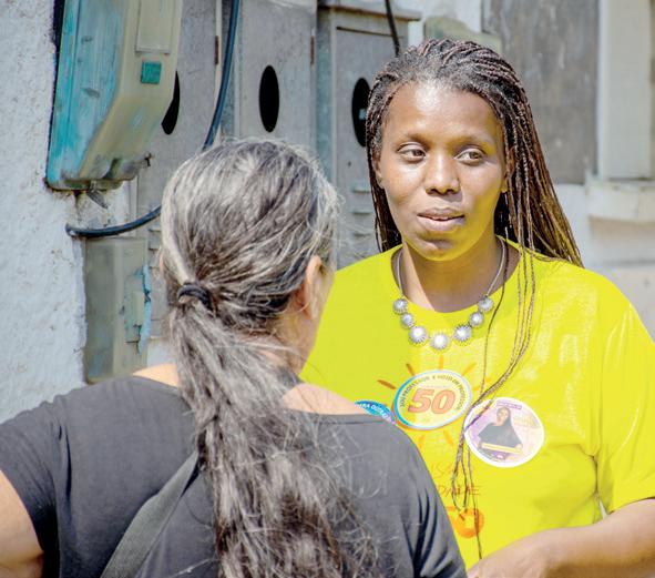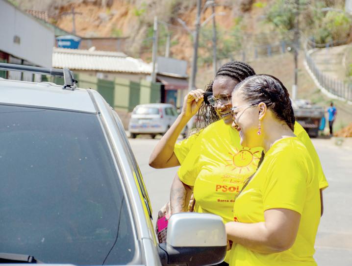 cansadas ao trabalho. Nossa proposta é melhorar o transporte público e gerar empregos, sempre dialogando com a população", explicou. A candidata também falou sobre sua trajetória, marcada por 17 anos de trabalho na educação pública de Barra do Piraí. "Sempre fui envolvida com movimentos sociais, projetos como Luz Câmara, Educação e Política e Cidadania. Minha missão sempre foi formar cidadãos conscientes e atuantes na política", a rmou. Ela reforçou que sua campanha é baseada no diálogo e na participação popular. "A nossa campanha é construída no dia a dia, ouvindo as demandas da população e buscando soluções para uma Barra do Piraí melhor", completou. Questionada sobre a escolha do professor auan Santos como seu vice, a candidata ressaltou que ambos têm origem na periferia e uma trajetória ligada à educação e aos movimentos sociais. "Nós representamos a renovação política, com uma proposta inclusiva e participativa", disse, destacando a importância de uma nova visão para a cidade.