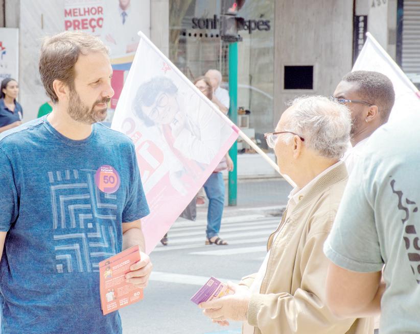 Petterson Magno, professor de história e servidor público municipal da área de educação, tem um objetivo bem delineado para sua campanha eleitoral: se dedicar à educação de Barra Mansa. Desde 2016, Petterson contribui para a consolidação do Partido Socialismo e Liberdade (PSOL) na cidade, chegando a concorrer à prefeitura em 2020. Para sua ação na série de reportagens “Um dia com o candidato”, Petterson escolheu fazer um ato, ontem, na Rua do Lazer, no Centro da cidade, com panfletagens e abordando a população para apresentar detalhadamente suas propostas de governo. Ele destacou a importância de se conectar com os trabalhadores e reforçou que seu partido é formado por pessoas que vivem a realidade da cidade. “Somos trabalhadores e estamos na disputa política para construir uma cidade que dê qualidade de vida para o nosso povo”, afirmou. Ele reforçou que o objetivo de sua campanha é garantir que a política local seja feita