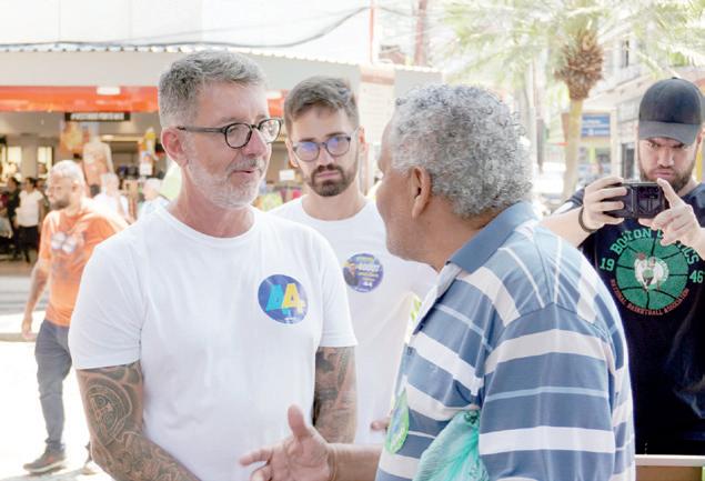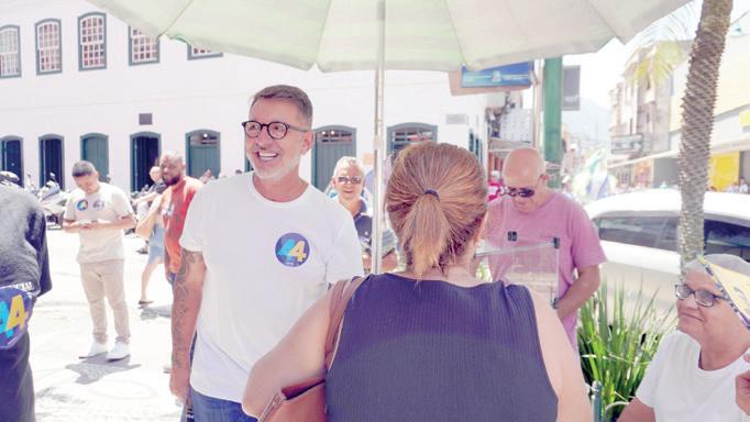 rança pública, trazendo diversas iniciativas, como a extensão da 166ª Delegacia de Polícia e a reabertura da unidade na Vila do Abraão, que estava fechada há mais de três anos. Por m, ele menciona a implementação do BPTU (Batalhão de Policiamento Turístico), que conta com policiais bilíngues para atender os turistas. “Estamos falando de uma cidade com uma história de 50 anos, e é fundamental que pensemos no turismo de forma estruturada”, conclui, pedindo à população mais uma oportunidade para promover melhorias signi cativas na cidade.
