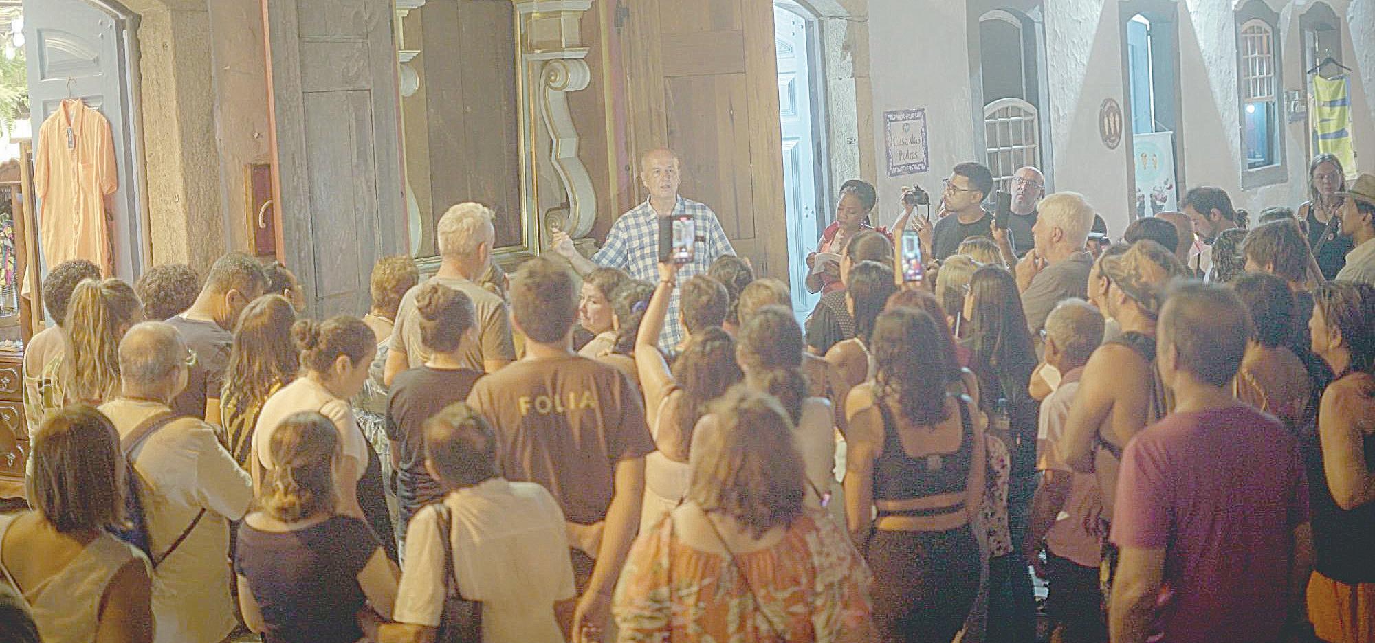“Tudo se inicia aqui na Igreja Matriz”, explicou o museólogo e arquiteto Júlio Cézar Dantas que, em 2023, iniciou pelo Museu de Arte Sacra de Paraty e pela Paróquia de Nossa Senhora dos Remédios as visitas aos portais espalhados pelo bairro histórico.