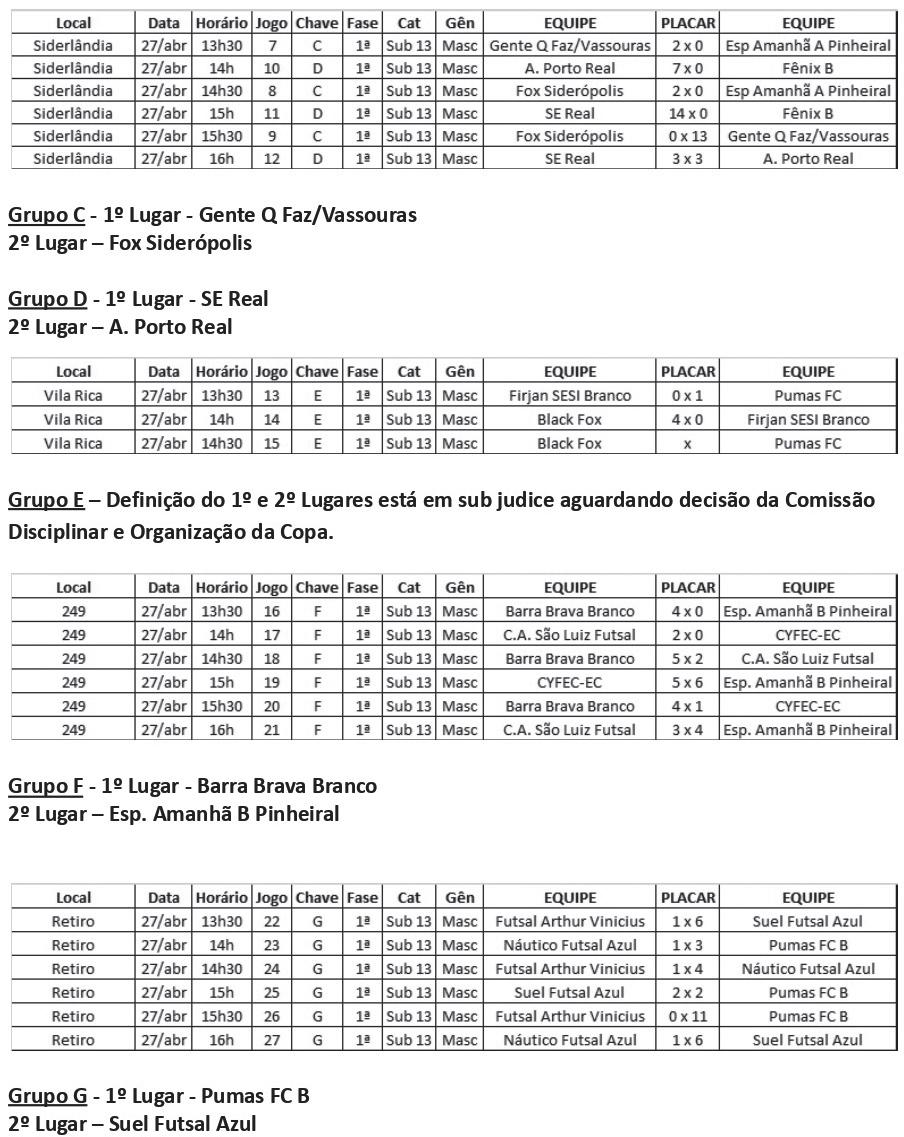 Já na Chave A, no bairro 249, foram registradas duas goleadas. A maior delas foi aplicada pelo Revela Ilha Clube, que venceu o Fênix A por 9 a 0. Em outro placar