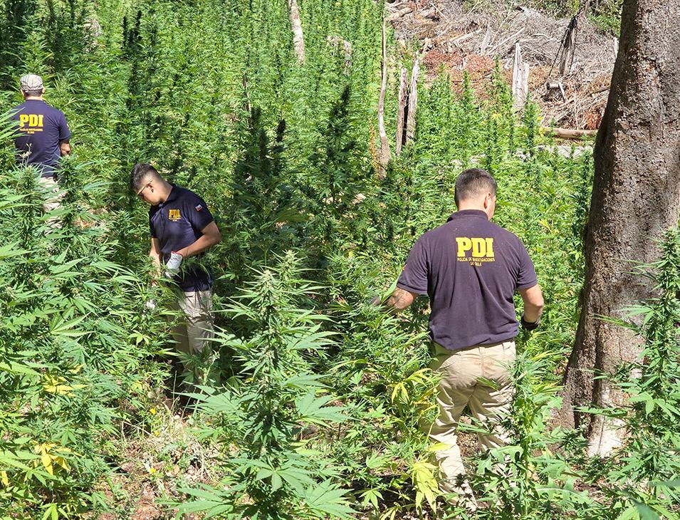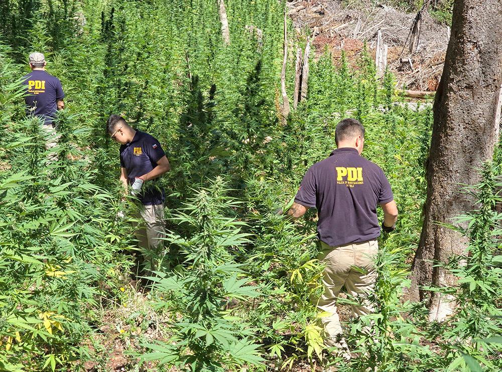 liciales se trasladaron hasta dicho sector, en donde pudieron comprobar la existencia de cultivos ilegales de cannabis entre quebradas de cerros y ocultas entre vegetación, procediendo a efectuar un rastreo en un lugar previamente georreferenciado, pudiendo incautar 4 mil 697 plantas de cannabis en proceso de crecimiento, además de 7 kilos 732 gramos de cannabis procesada, corres-