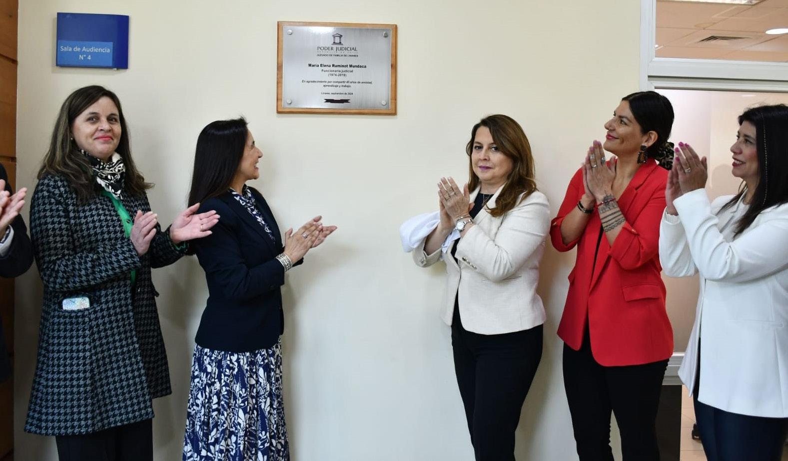 Rodrigo Biel Melgarejo, destacando en sus palabras “la placa que ahora estará presente en este juzgado, les recordaras a todos tu calidez y, a los jueces y funcionarios que se incorporen, les permitirá averiguar quien fue María Elena. A la que defino como una mujer, en la que no tuvo cabida la mentira ni la ambición”.