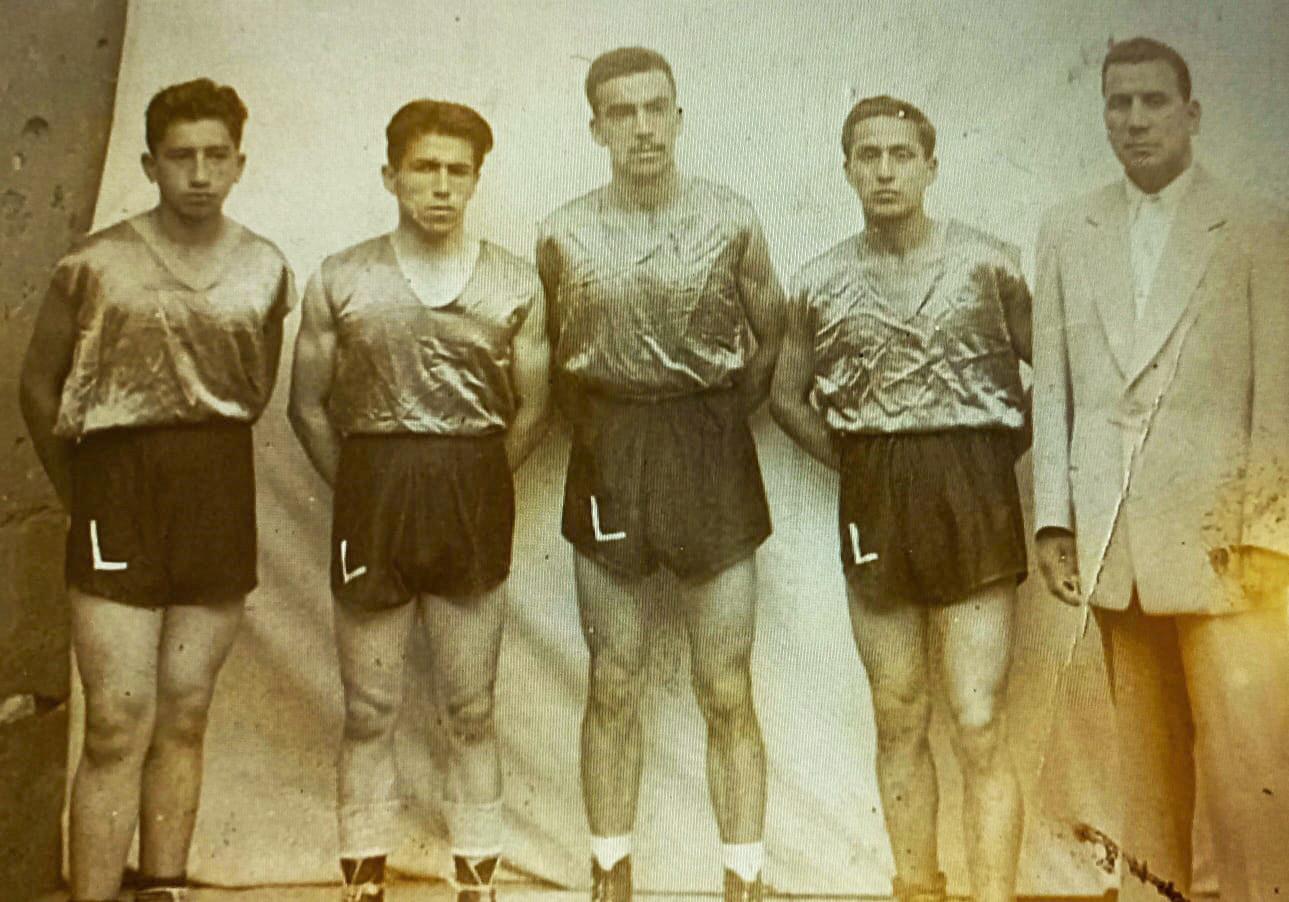 Selección de boxeo Linares. Reinaldo Lavín, al centro. Flavio Torres, director técnico de terno)
