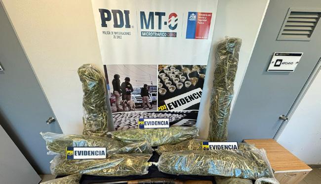 Es así como los oficiales policiales ejecutaron una orden judicial de entrada y registro a un domicilio, incautando 6 plantas de cannabis, 8,6 kilos de cannabis procesada y elementos de dosificación; además, de 1 escopeta calibre 16 y 3 cartuchos del mismo calibre, por lo que tras dar cuenta del procedi-