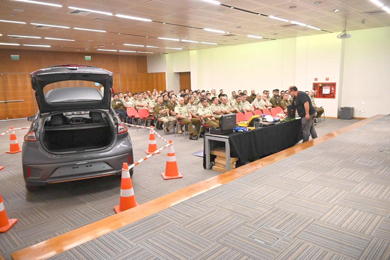 Se contó con la presencia de 100 funcionarios policiales, quienes tuvieron un acercamiento e interiorización de los riesgos y protocolos de actuación ante alguna emergencia vial o hecho criminal en el cual participen vehículos eléctricos e híbridos.