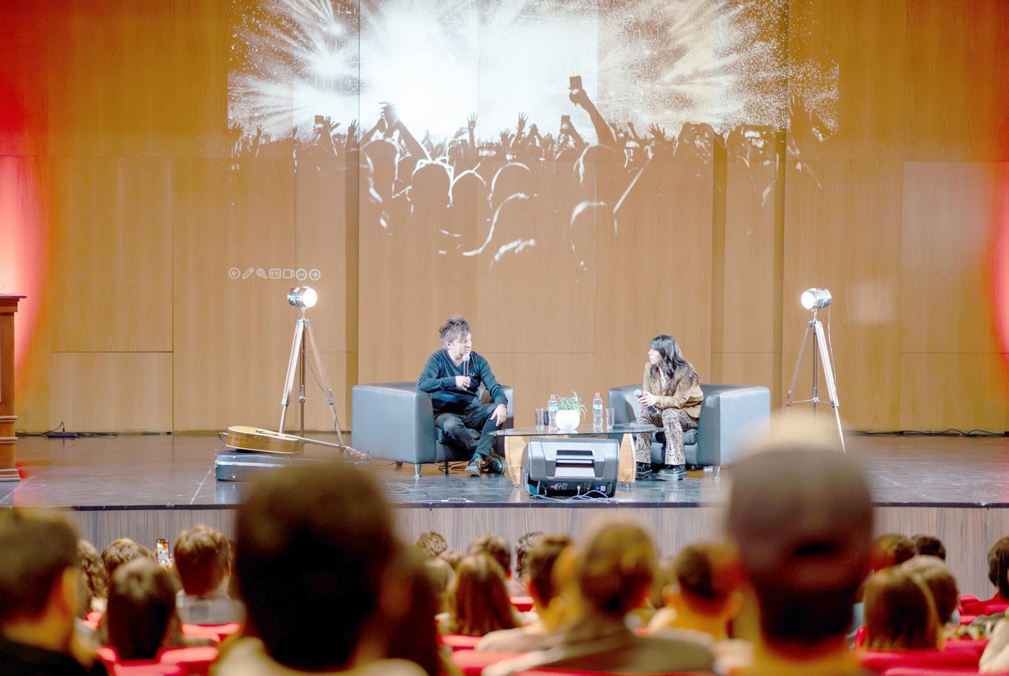 • El cofundador de Los Bunkers visitó la Universidad de Talca para repasar su historia musical, así como dialogar con los jóvenes que comienzan su vida universitaria.