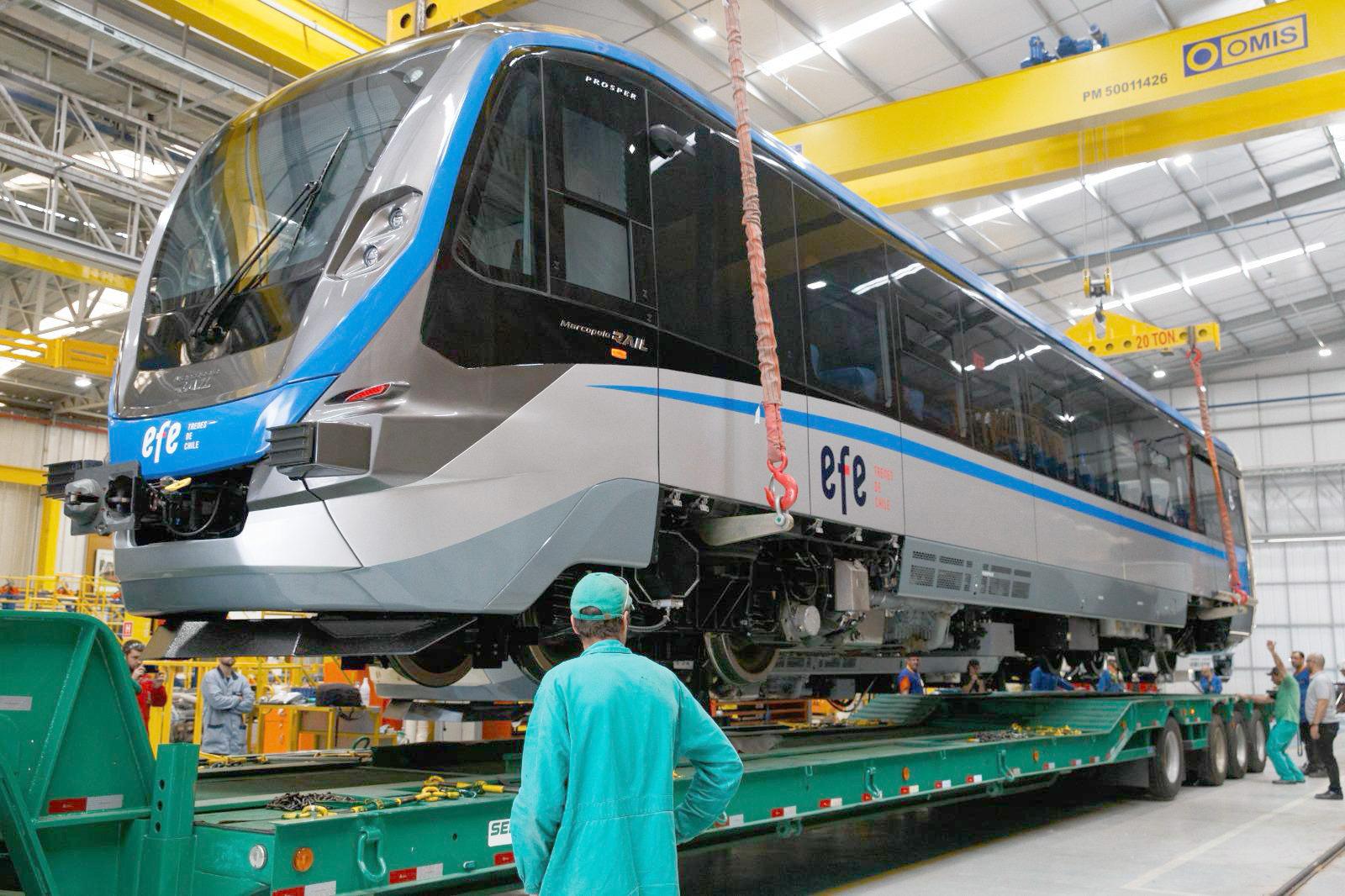 - El moderno tren, fabricado por Marcopolo Brasil, partió desde Brasil y es el primero de los tres que renovarán la flota ferroviaria, en la histórica ruta de la región del Maule.