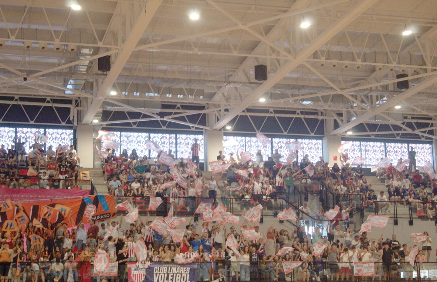 lo de ese gimnasio y a pesar de todo aquello , los “rayados” de la Villa de San Ambrosio se quedaron con la primera manga por 28 -26 , el segundo también para los linarenses por 25-17 . El tercero y cuarto fue para Murano por parciales idénticos de 25- 19 . Como estaban igualados, había que definir a través de un set de oro a los 15 puntos . Los pupilos de Grimalt ,con la presión de vencer , para ganar el partido y alargar a un set definitivo . Así fue y Linares se quedo con el partido con el guarismo de 16-14 . Hubo euforia y alegría de la parcialidad albirroja en las gradas , porque el equipo tenia que seguir luchando contra Murano que conocía ya la superficie, con la mayoría de los jugadores de Santiago, y eso marca un plus porque el técnico podía contar con el equipo completo para preparar este encuentro, no así los linarenses, ya que muchos estaban fuera de la ciudad y se juntaban solo algunos días de la semana para entrenar .