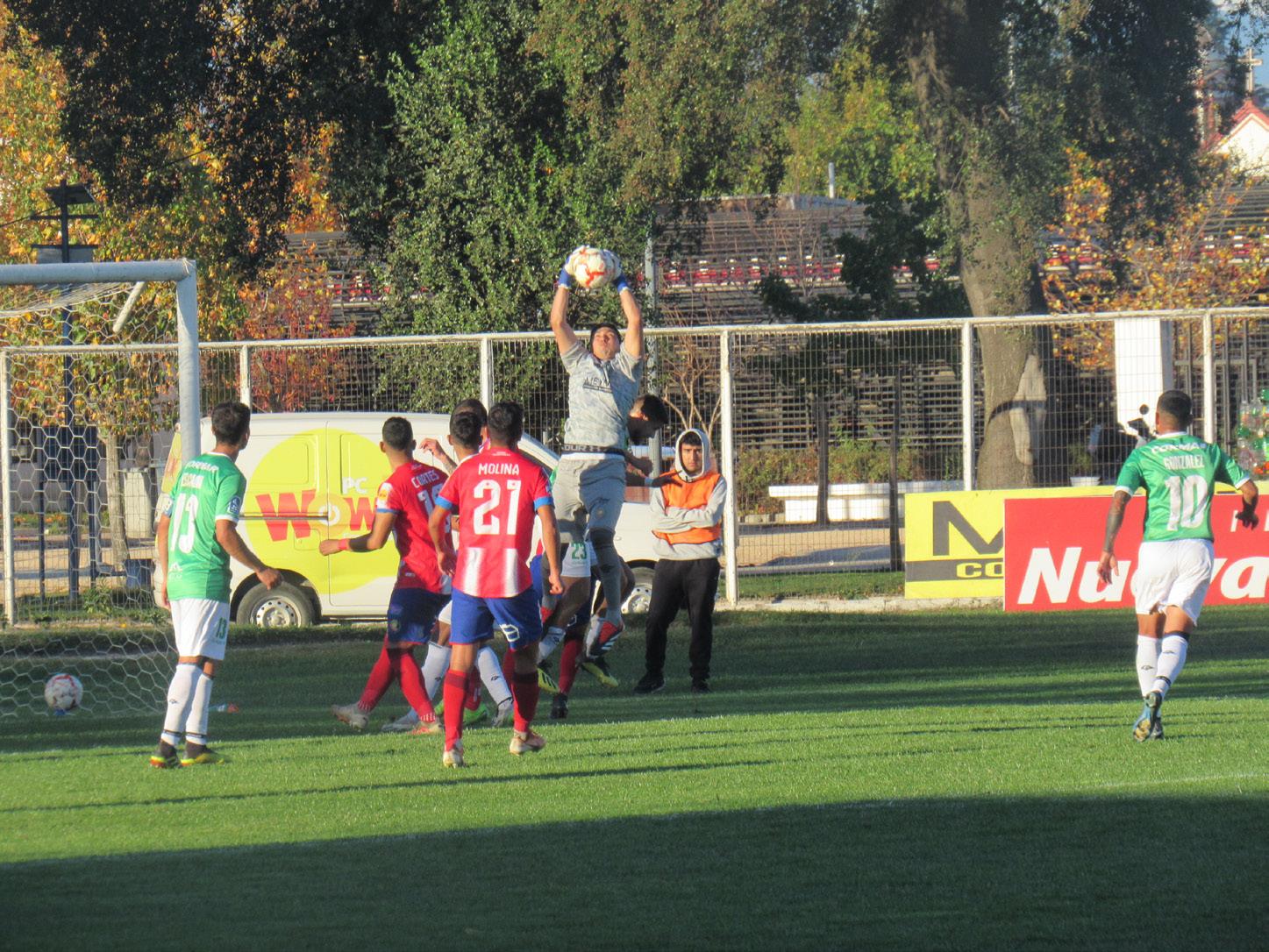 Los albirrojos se pusieron en ventaja, luego de un pase de Droguett, pivoteo de Soza en el área chica para que Felipe Escobar, liquidara en el arco norte del polideportivo de la calle Rengo y estallaran las gargantas con el grito de gol, que por muchas fechas no se escuchaban. Era el minuto 26 del primer acto. Con ese marcador se fueron al descanso.