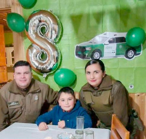 los Carabineros que tanto adora. Por su parte, el jefe del Retén de Semillero, Suboficial Mayor Nelsón Varas mencionó: “este es un homenaje que se rindió por parte de los Carabineros de Semillero, tiene origen en el acercamiento comunitario, rol que desarrollamos con ahínco y esperanza cada día, con la comunidad y, dentro de ello está el dar alegría en momentos tan importantes, como lo fue en el día de ayer, en el cumpleaños número 8 de Cristóbal a quien le obsequiamos un presente y le llevamos globos y alegría”.