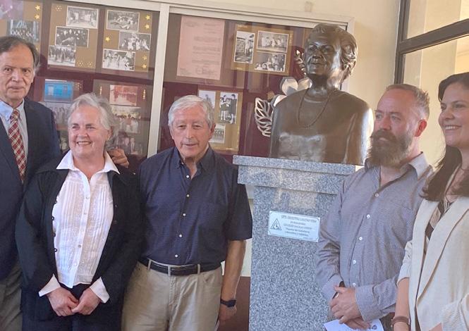 Don Mario Moreno, representando a la fundación educacional Lucila Godoy, junto a la directora del colegio, Sra. Isabel Moreno Avendaño agradecieron el generoso regalo de la escultura muy elogiada y valorada por los presentes.