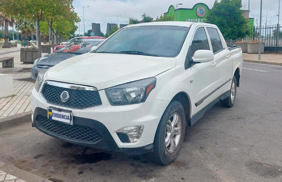 la ciudad de Concepción, una camioneta marca SsangYong, modelo New Actyon Sport 2.0, año 2014, con un avalúo de 10 millones de pesos. Lo anterior obedece a que la víctima, quien le vendió su vehículo a un tercero, recibió como pago un cheque falsificado.