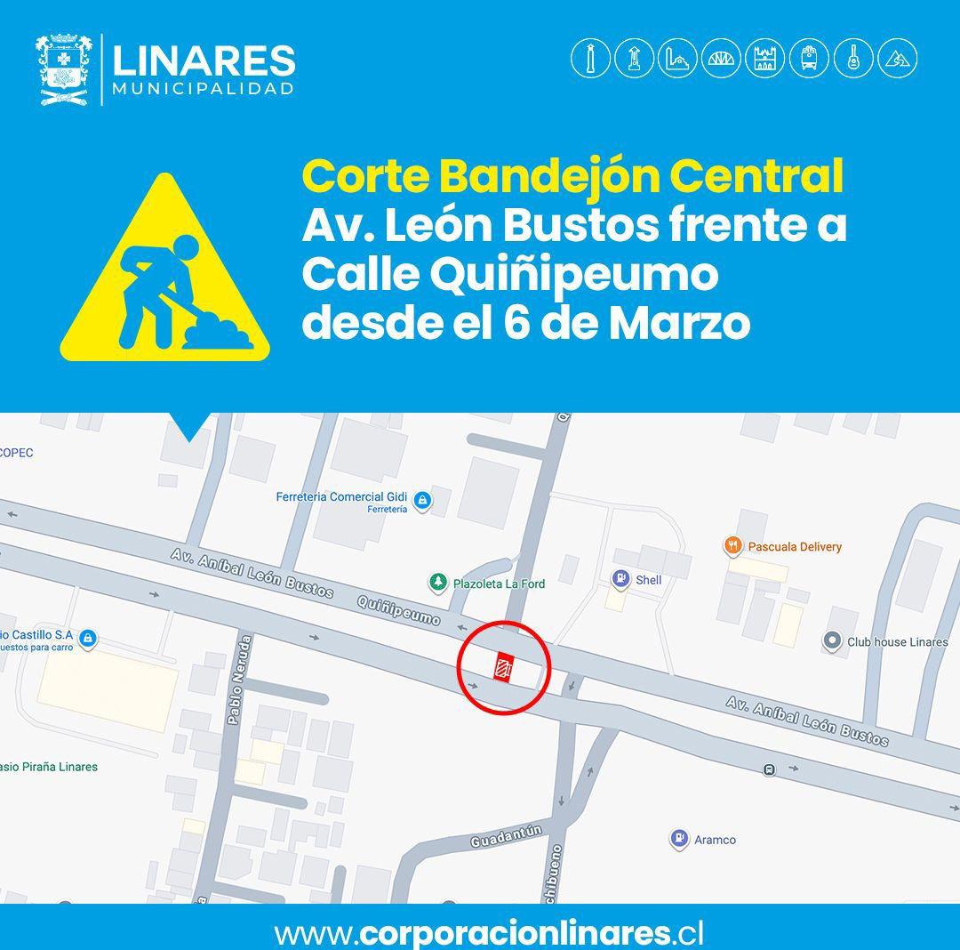 Desde este viernes 6 de marzo, se realizará el corte del bandejón central en Avenida Aníbal León Bustos frente a calle Quiñipeumo, por trabajos solicitados por el proyecto del Centro Comercial Aramco – McDonald’s.