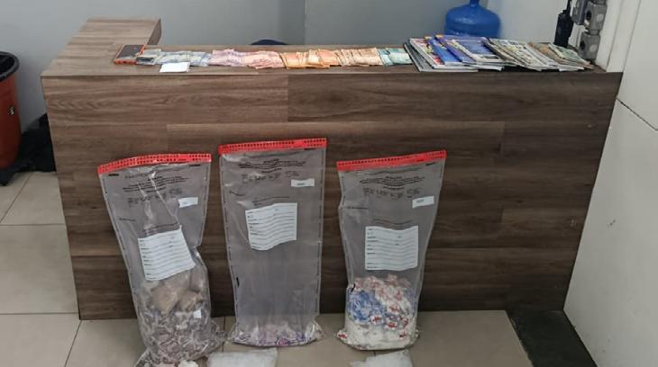 ceberia a quantia de R$1,5 mil para armazenar e distribuir para pontos de venda de drogas na zona rural de Mogi das Cruzes e Itaquaquecetuba. Dentro da residência, os policiais encontraram 11 cadernos de anotações da quadrilha, cerca de R$3,3 mil em dinheiro, uma balança de precisão, um telefone celular, 1.724 porções de maconha (3,9kg), 3.182 porções de cocaína (2,39kg), 262 porções de crack (255g), além de pacotes com embalagens vazias. A mulher foi presa no ato e foi conduzida para a Central de Flagrantes de Mogi das Cruzes onde, segundo os policiais, segue à disposição da Justiça.