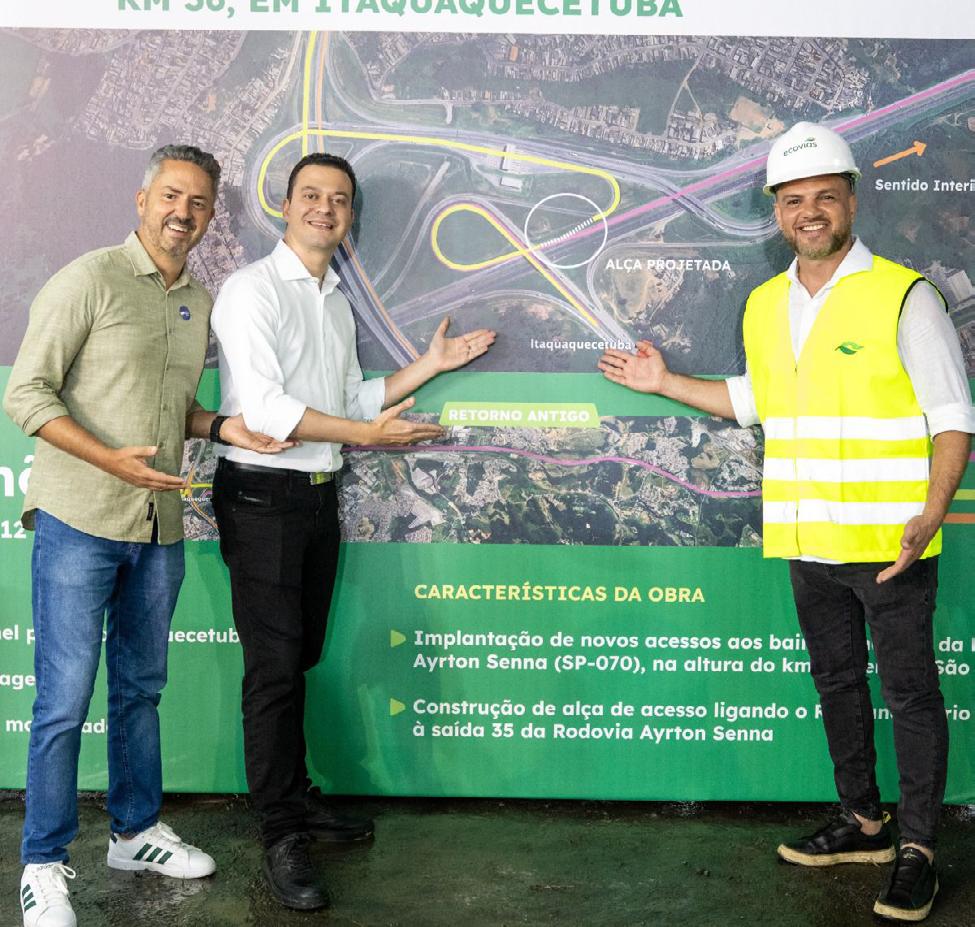 O prefeito de Itaquaquecetuba, Eduardo Boigues, juntamente com o governador de São Paulo, Tarcísio de Freitas, participaram do ato simbólico de início das obras das novas alças de acesso do município ao Rodoanel Mário Covas e à rodovia Ayrton Senna (SP-70). A expectativa é de que os trabalhos sejam concluídos no segundo semestre de 2027, com um investimento de mais de R$91 milhões.