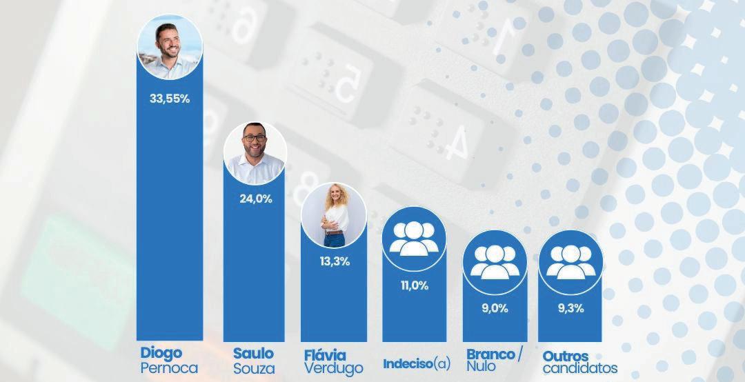 Diogo Pernoca lidera com 33,5% das intenções para prefeito