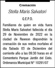 Negri y otras. Sala velatoria 28 de Ju lio 1360 sala C, a partir de las 9.