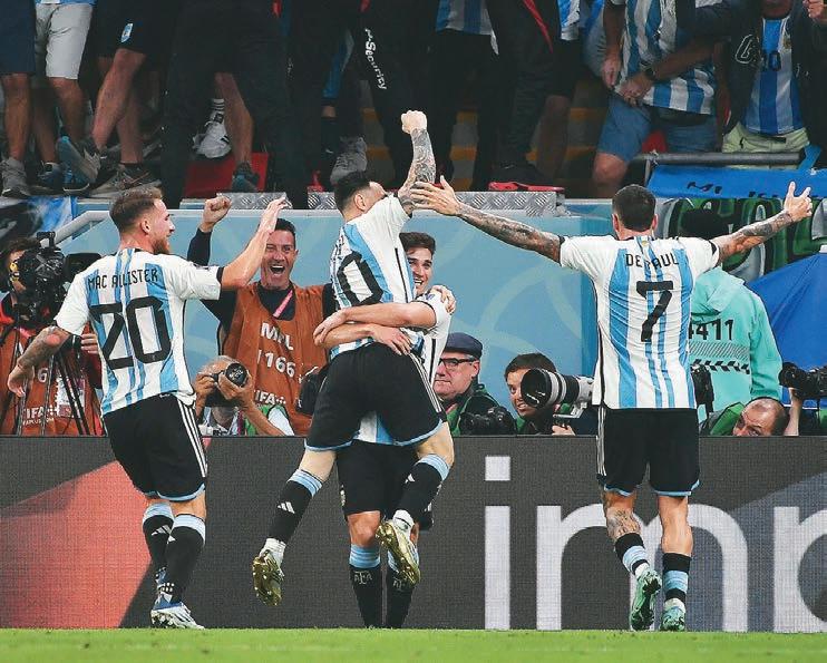 21 Un pasito más MUNDIAL DE QATAR 2022 ● Argentina venció 2-1 a Australia con un gol de Julián Álvarez y otro de Lio Messi, la figura de la cancha. Jugó mucho mejor pero terminó sufriendo. El viernes, los cuartos de final con Países Bajos, que venció 3-1 a EE.UU. DEPORTES La frase del día: “Los docentes hace 5 años que no trabajan” TRABAJADORES DE SALUD CONTRA TRABAJADORES DE EDUCACIÓN EN ESQUEL. P. 3 Chubut fue puro festejo