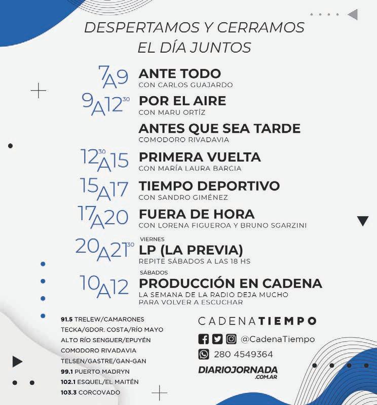 Publicidad: Departamento Comercial Yrigoyen 583 Tel.: (0280) 442-2209. e-mail: gcomercial@grupojornada.com
