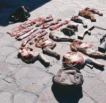 Continuando con la requisa, se le solicitó que exhibiera voluntariamente el interior del baúl, a lo que manifestó que había cazado sólo dos chulengos. Al abrir la compuerta, los agentes observaron a simple vista varias piezas de guanaco y dos aves martineta. También había una mochila con varios cuchillos.