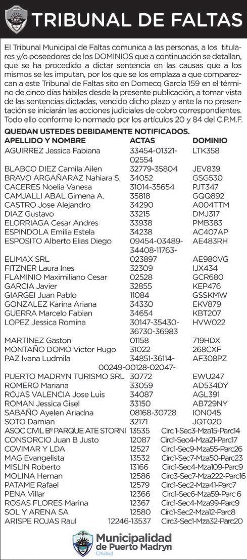 Publicidad: Departamento Comercial Yrigoyen 583 Tel.: (0280) 442-2209. e-mail: gcomercial@grupojornada.com