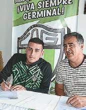 ● Once jugadores de Germinal más el DT Mario Martínez rubricaron su vínculo profesional en la sede del club. DEPORTES