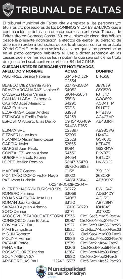 Domicilio legal: Yrigoyen 583 (9100) Trelew, provincia de Chubut. Tel./Fax: (0280) 442-2209 (líneas rotativas). recepcionjornada@grupojornada.com