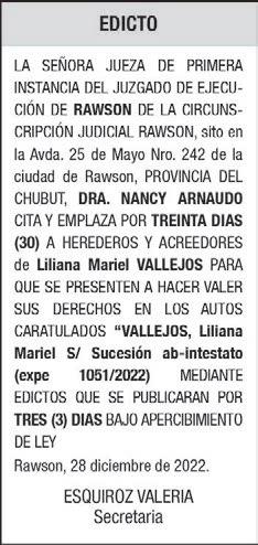 En la comisaría de la Mujer de Gaiman, ubicada en la calle La Pampa 15 del barrio 25 Viviendas de esa localidad, se solicita el urgente comparendo del ciudadano Mario Antenado con último domicilio en la